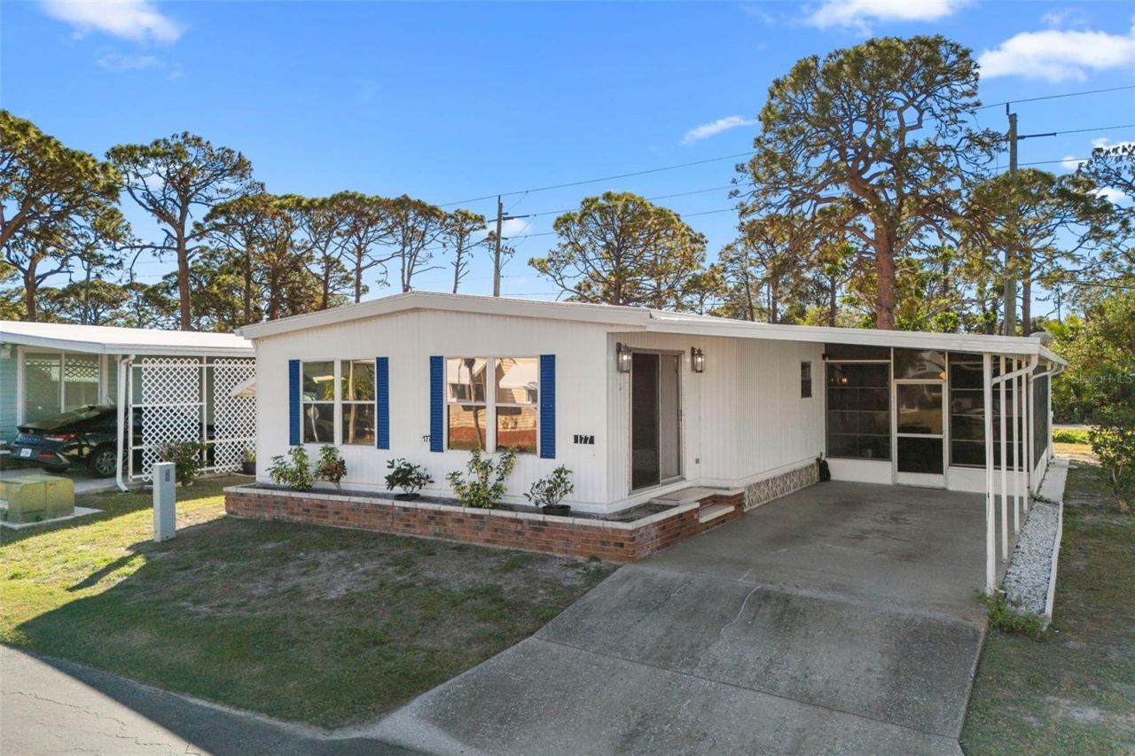 GREAT price and MOVE IN READY! Welcome to this charming home, in the 55+ community in the Polynesian Village, perfectly suited for snowbirds or anyone seeking a peaceful, low-maintenance lifestyle approximately a MILE FROM THE BEACH!! This oversized 2-bedroom, 2-bathroom home offers close to 1,400 sq ft, with convenient community living and rich amenities tucked off the beaten path but so close to all your local favorites! Take advantage of this highly sought after location in a NO FLOOD ZONE (never flooded) and close proximity to the beautiful Manasota Key Beaches, with easy access via walking, biking, or driving! Inside, you'll find an eat-in kitchen perfect for casual meals, as well as a cozy combination dining and large living space. A FLEX space off the living area provides additional versatility-whether you want an office, den, or crafting room. The master bedroom features a large walk-in closet and an adjacent primary bath, ensuring your comfort and privacy. Step outside onto the screened-in LANAI, with freshly painted concrete, for relaxing evenings with a refreshing breeze. There's also a WORKSHOP space to satisfy your DIY projects or hobby needs. Recent updates include a NEW ROOF, recently installed with a transferable warranty, freshly painted primary bathroom, a nearly $6k RE-PIPE under the house, new LVP flooring, A/C 2017, Hot water heater 2020 and the addition of 22 NEW OUTLETS throughout the home. Plus, all new 3/4 plywood was replaced around the perimeter & kitchen and the VAPOR barrier has been done in the past few years for added protection. The community is golf-cart friendly, has additional onsite storage options and fantastic AMENITIES, including a POOL, kitchen, library, newly remodeled clubhouse, and SHUFFLEBOARD courts, making it easy to enjoy an active lifestyle. As well, enjoy the added bonus of having your cable and internet included in your HOA dues, and the ability to utilize extra storage in the community for an extra cost! This property has been lovingly maintained by its single owner, ready for you to make it your own. Don't miss out on this opportunity, schedule a showing today!