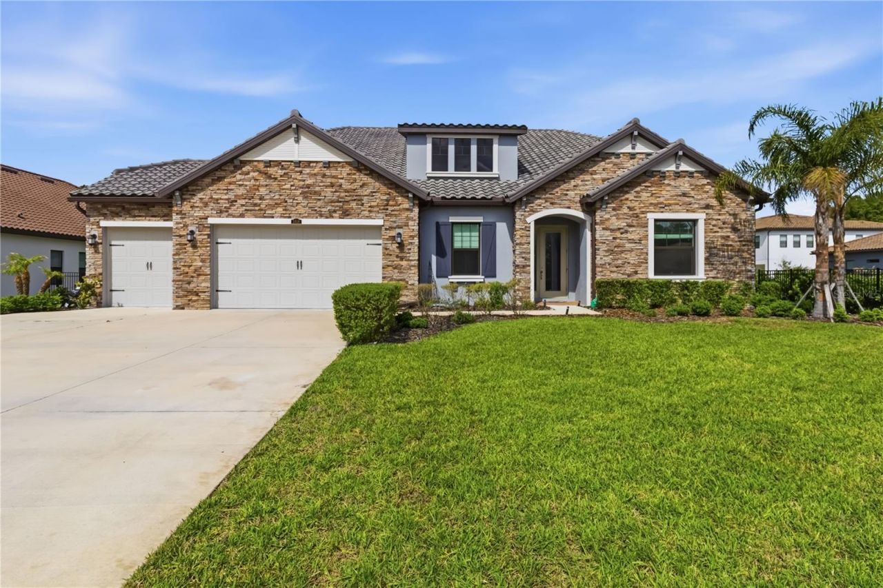 Luxuriously upgraded EAST-facing home in gated Cordoba Estates on a rare 0.62-acre lot backing to conservation with no rear neighbors. *This 3,033 sq ft home features 4 bedrooms, 3 baths, 3-car garage, private office with French doors, and a versatile flex room (office/gym/nursery). Enjoy ceramic tile throughout, high ceilings, and tray accents. Gourmet kitchen with 42 soft-close cabinets, quartz countertops, walk-in pantry, under-cabinet lighting, and spacious dining area. Expansive primary suite with spa-like bath, dual vanities, garden tub, large walk-in shower, and 2 custom walk-in closets. Includes whole-house water softener, RO system, and HVAC UV filtration. Massive backyard with serene conservation views. Resort-style amenities: pool, splash pad, playground, tennis/basketball courts, dog park. Prime location near Tampa Premium Outlets, Moffitt, airport & I-75/I-275. All measurements and details are approximate. Please verify if important.