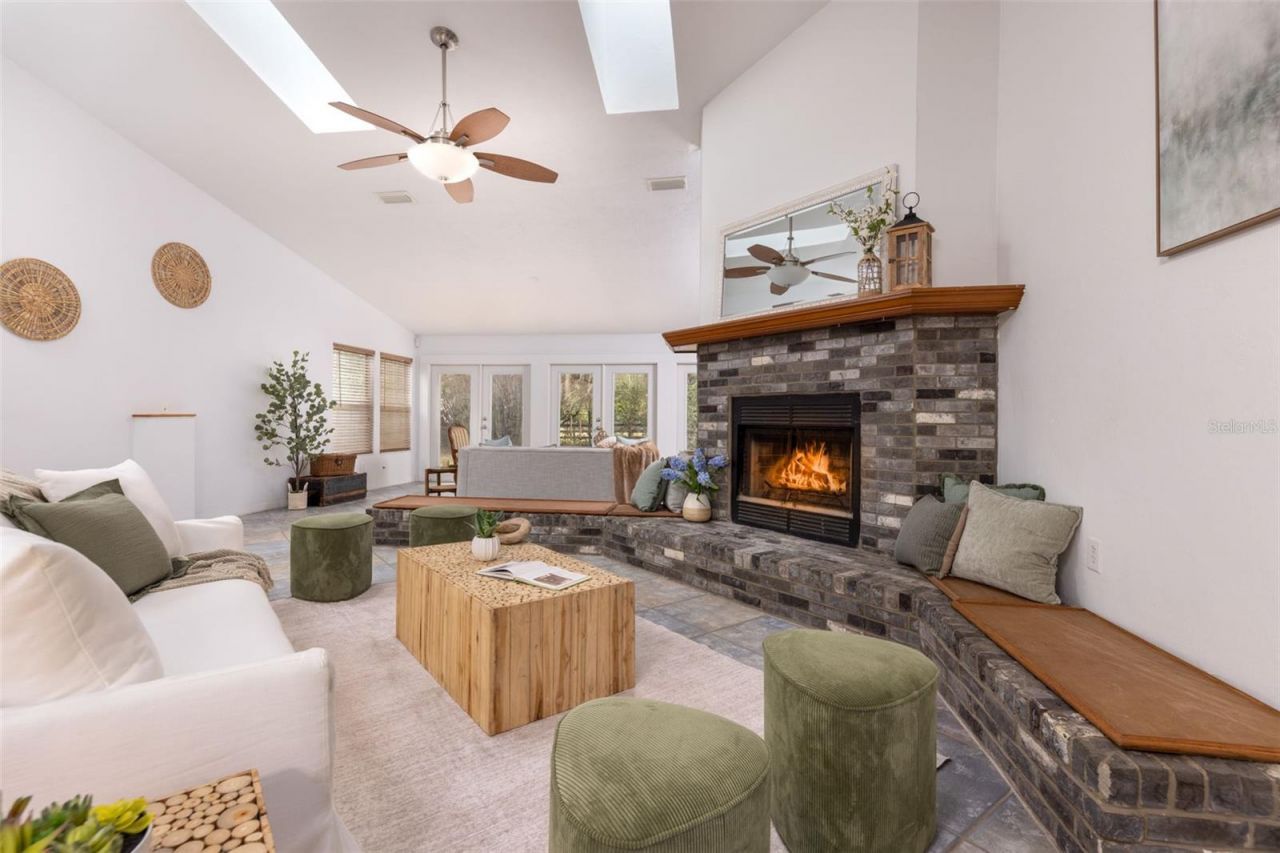 Tucked away on over 2 private acres this unique property offers the perfect blend of space, character and versatility. The beautifully maintained grounds feature mature trees, a tranquil water feature, and an expansive cleared area ideal for outdoor hobbies, animals or recreation-all secured by a private gated entrance. Inside the home showcases a spacious and inviting layout with soaring ceilings, an impressive stone fireplace as the focal point and abundant light streaming through multiple sets of French and sliding glass doors that frame picturesque views of the surrounding beauty. The split bedroom plan features a generous primary suite with dual closets and a spa-inspired bath with a soaking tub. A stand-out feature is the oversized bonus room with a full bath that could easily be converted into a guest suite. With no carpet throughout and a large attached garage providing ample storage, this home combines comfort flexibility and peaceful living waiting for its next owner to enjoy!